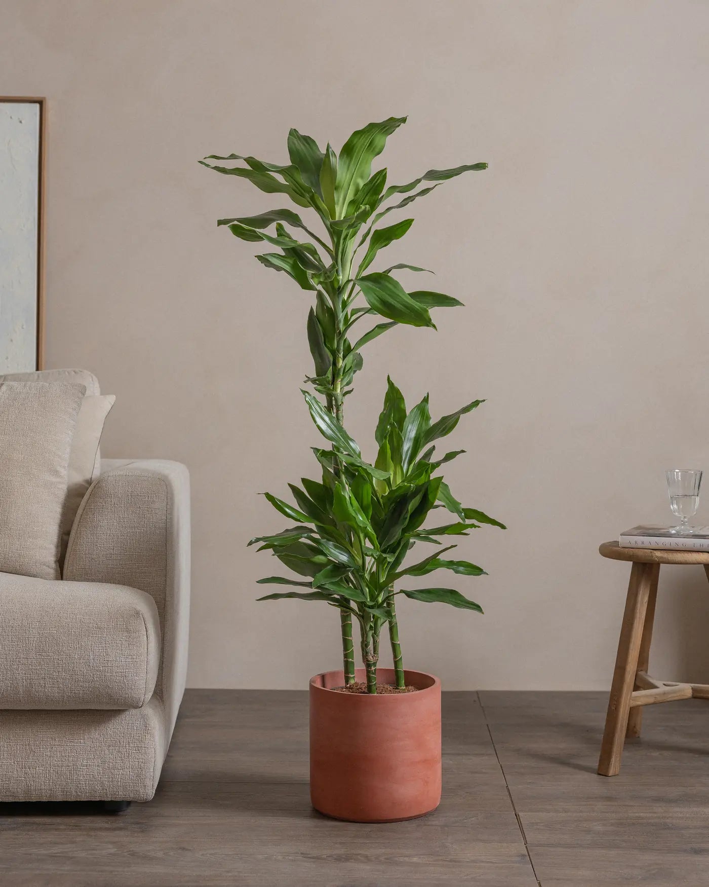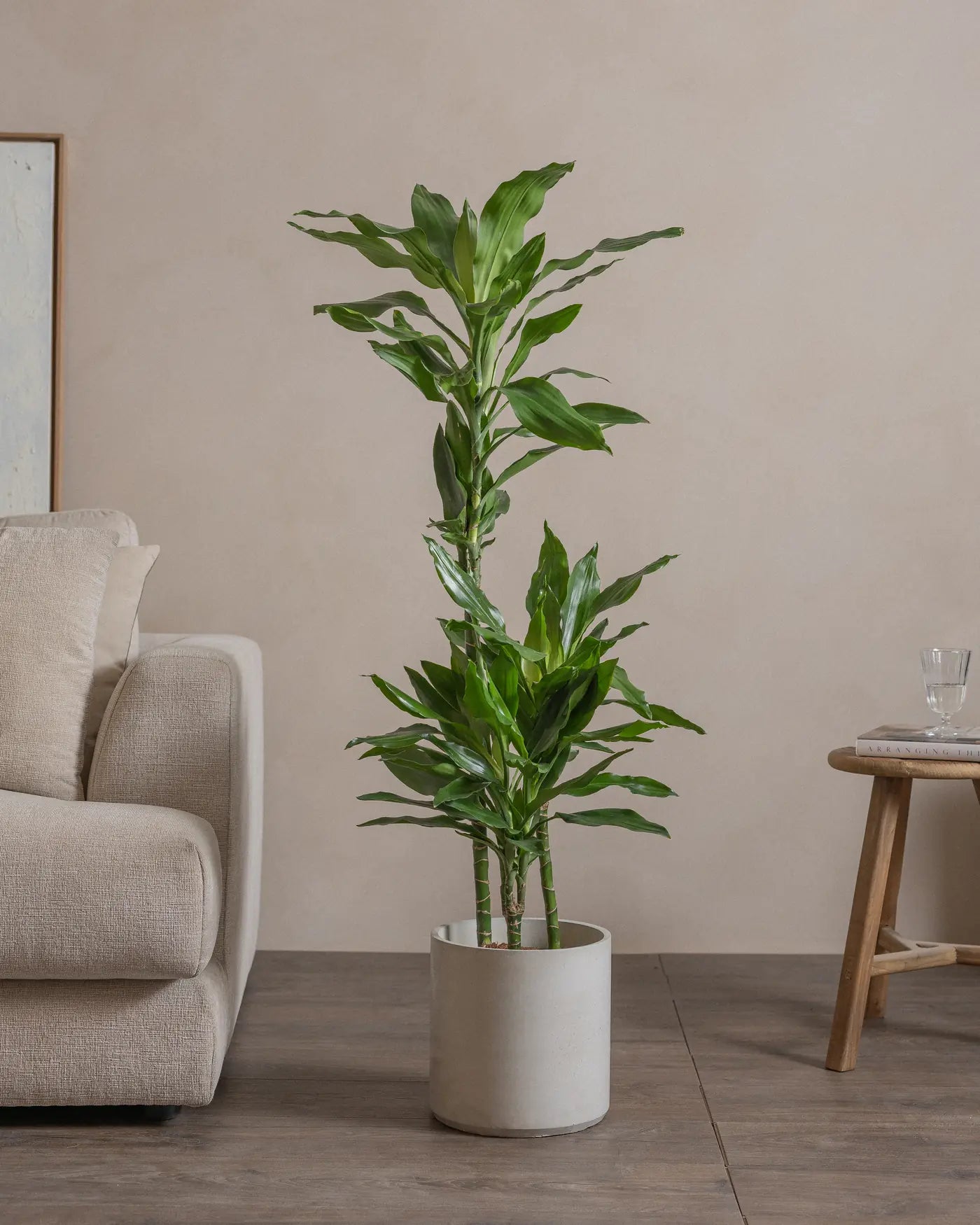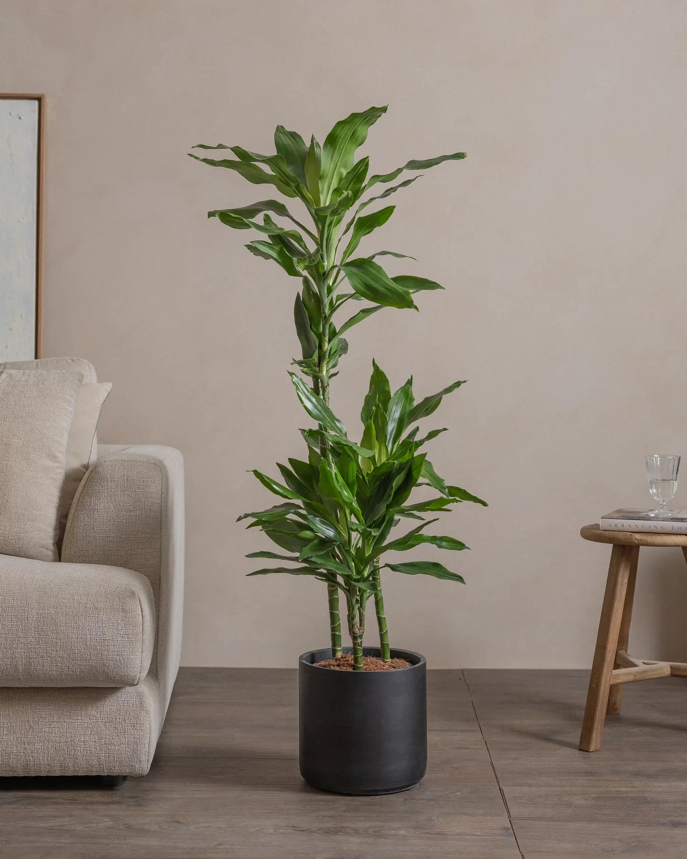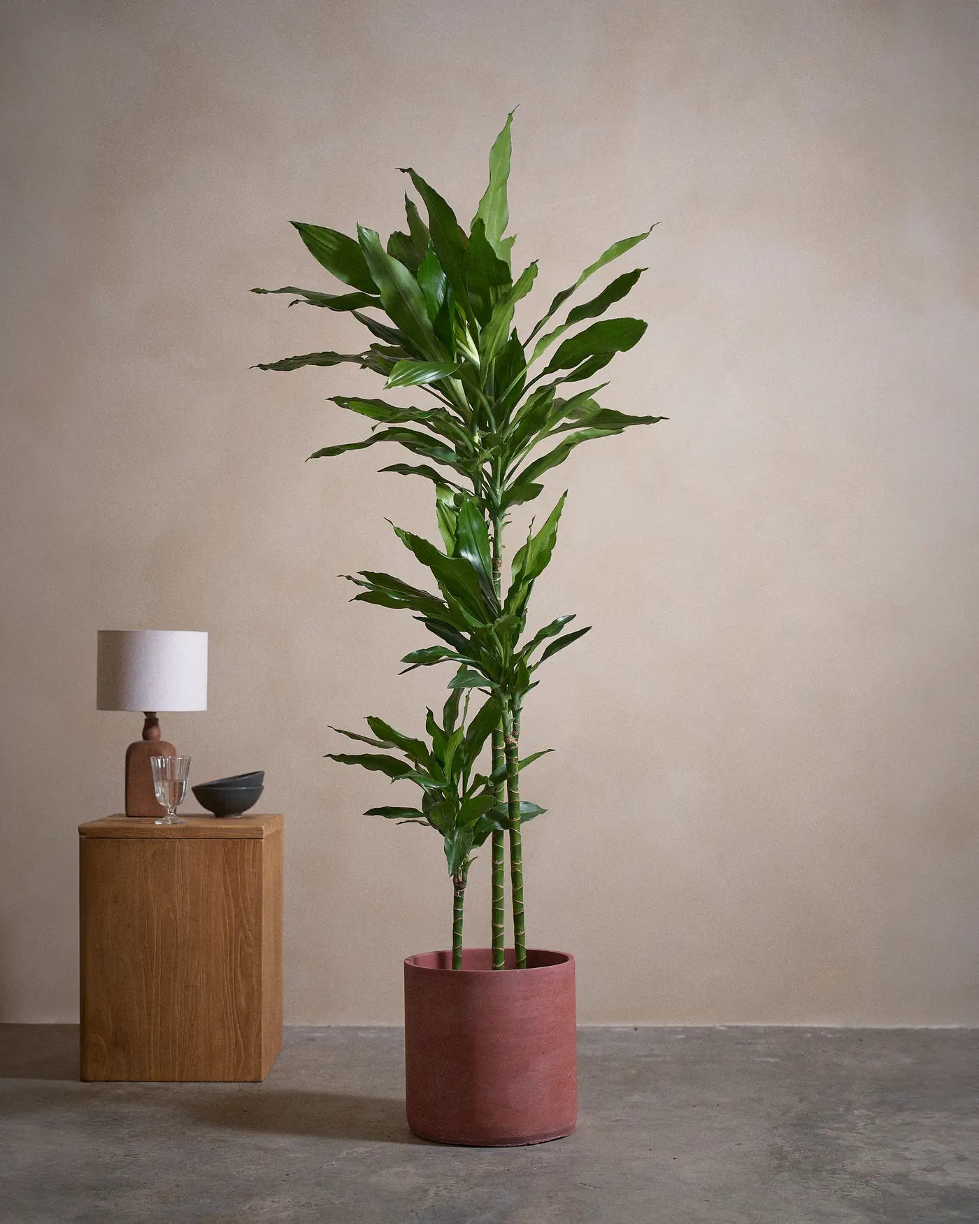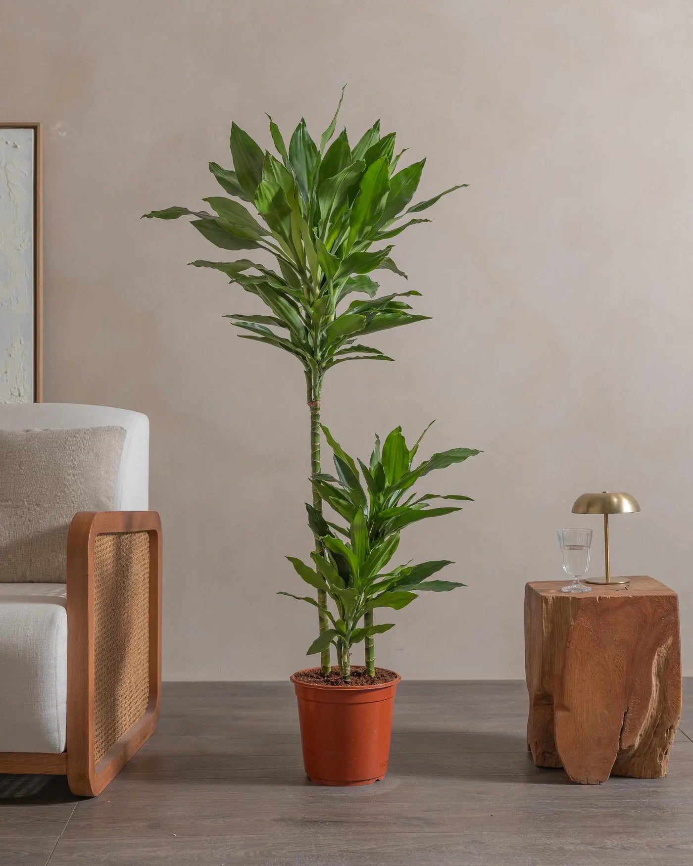 Known for its lush, deep green foliage, the Dracaena Janet Craig is a low-maintenance plant that thrives in low to medium light conditions, making it perfect for homes and offices. Its air-purifying qualities and elegant appearance make it a timeless addition to any indoor space. Water sparingly, allowing the soil to dry between waterings for optimal growth.