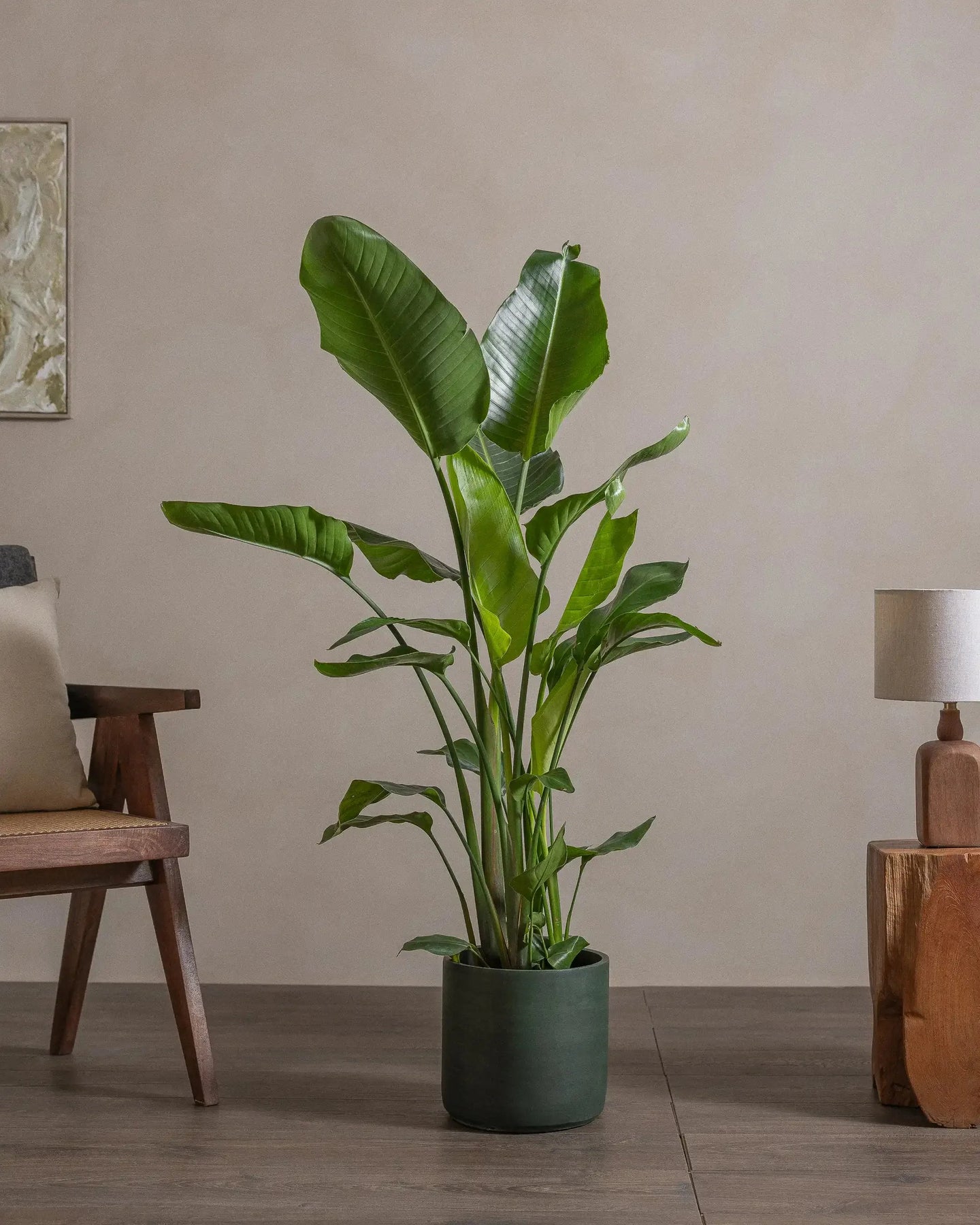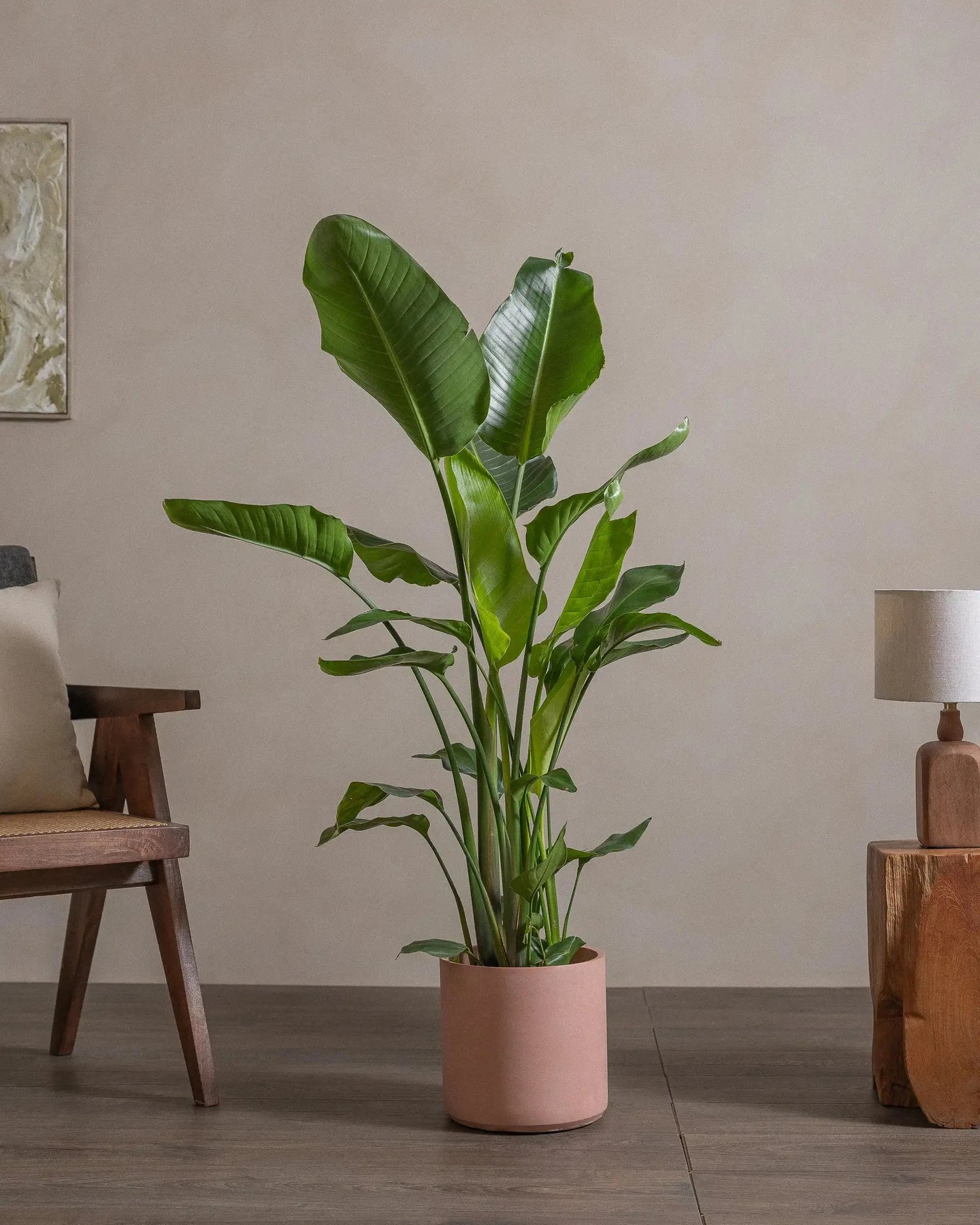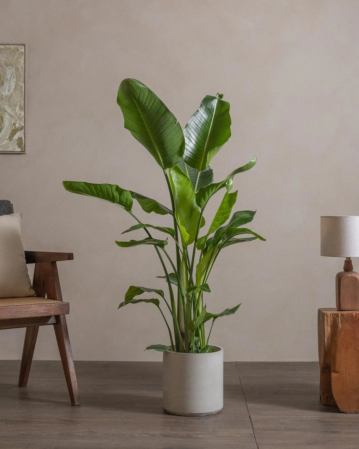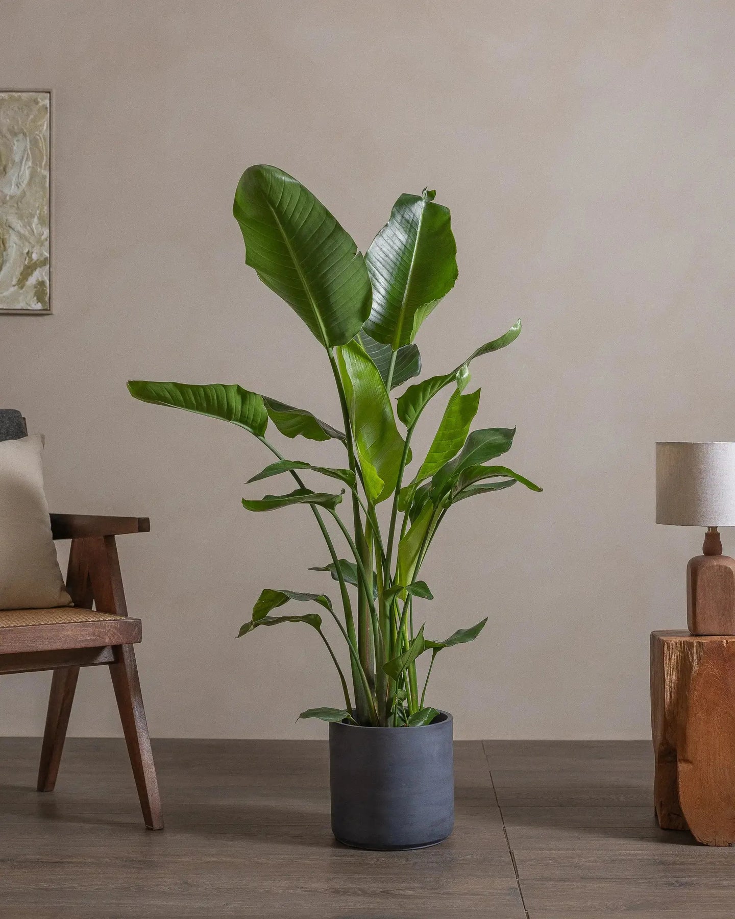 The Bird of Paradise (Strelitzia Nicolai) is a tropical plant, with larger-than-life leaves. This regal plant makes a statement in any room it is placed in.