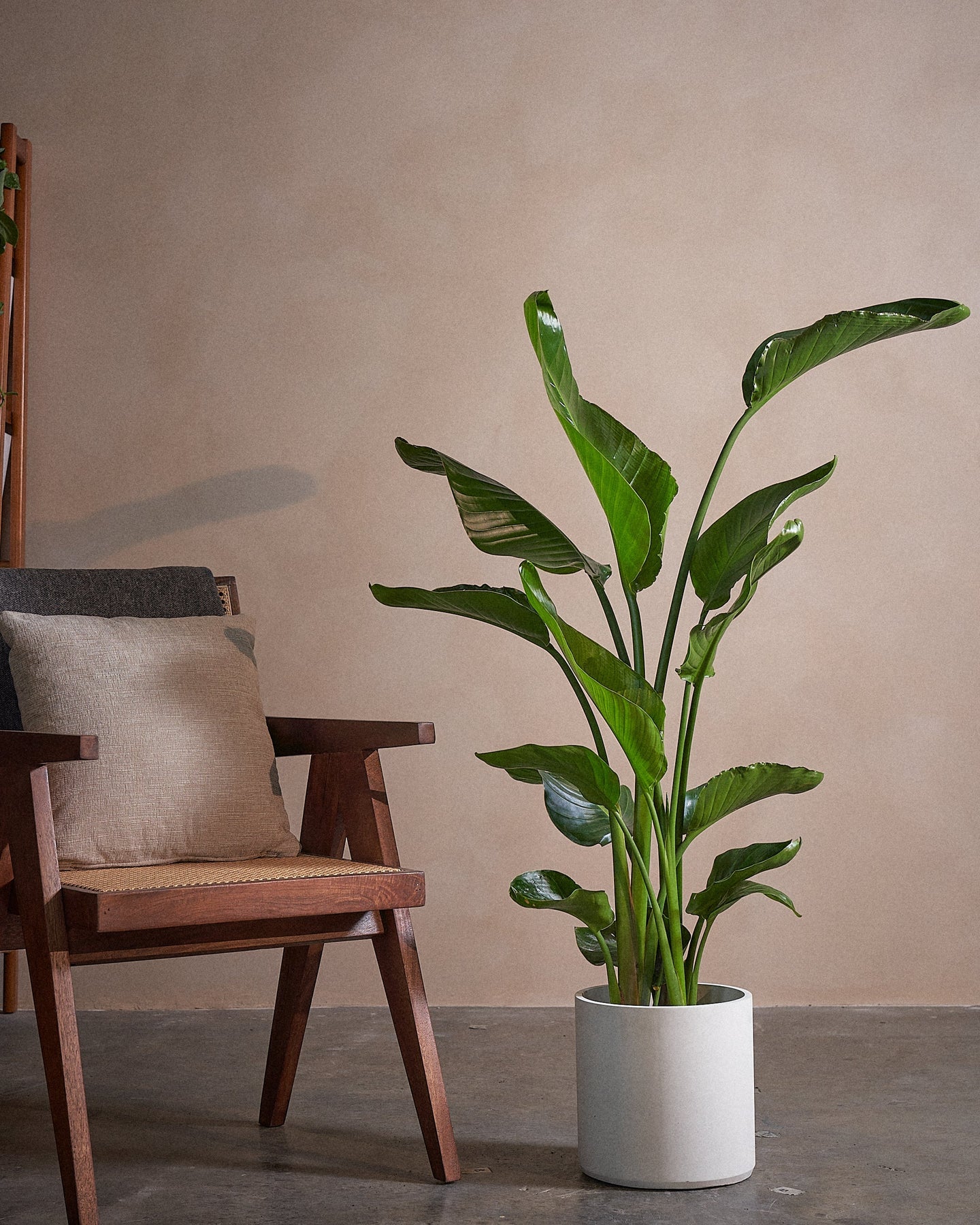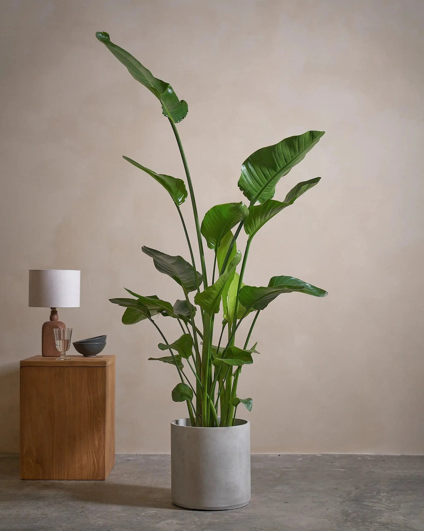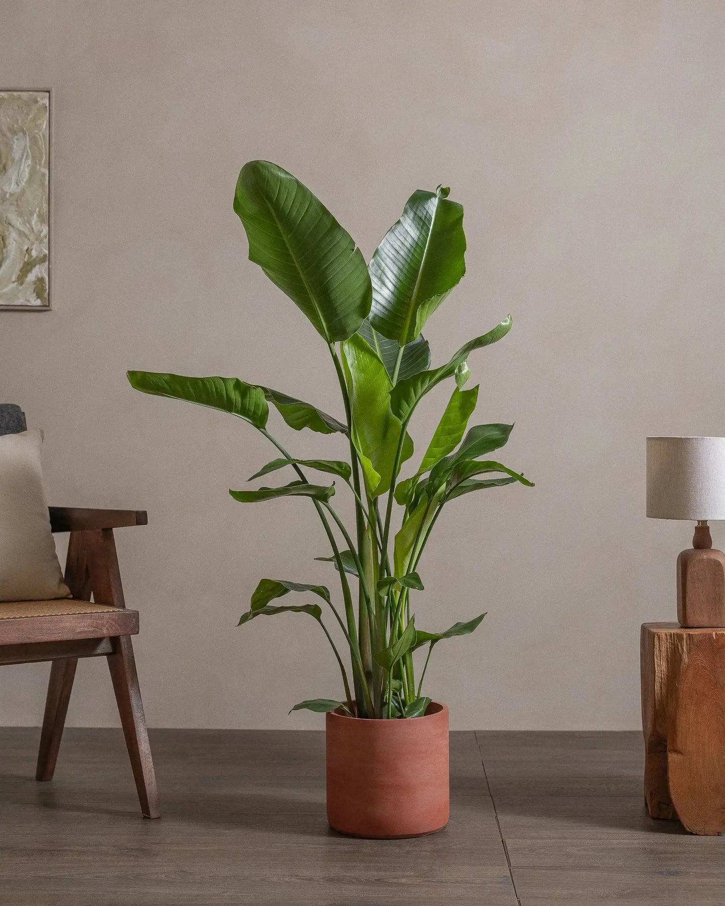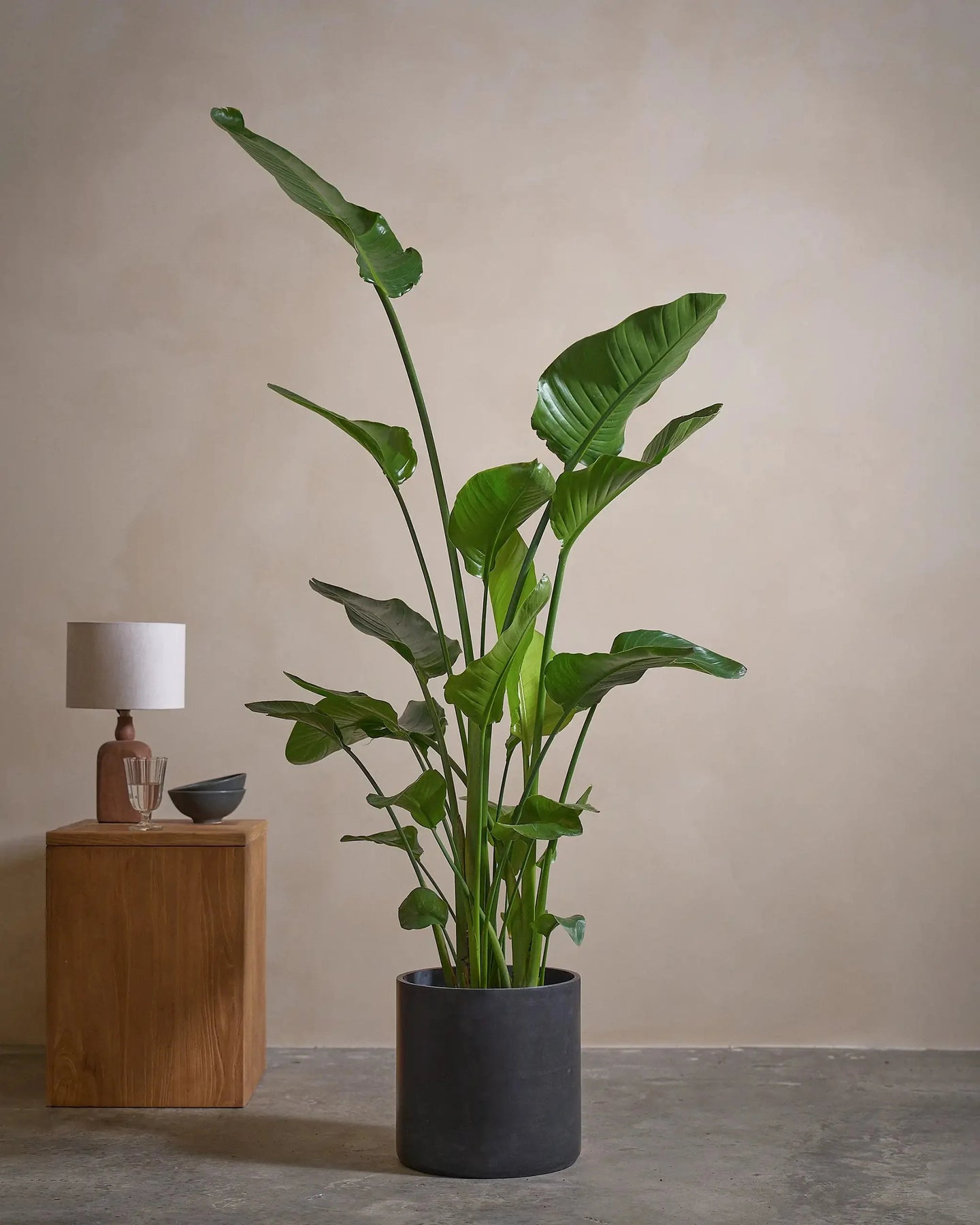 The Bird of Paradise (Strelitzia Nicolai) is a tropical plant, with larger-than-life leaves. This regal plant makes a statement in any room it is placed in.