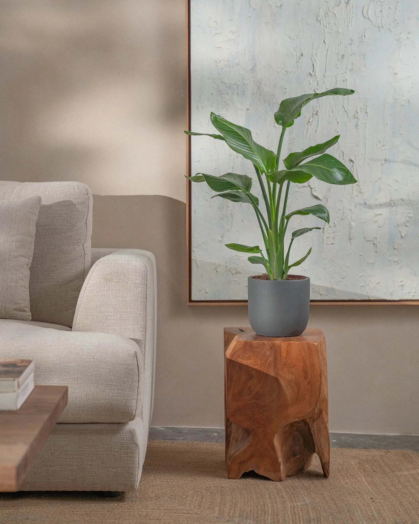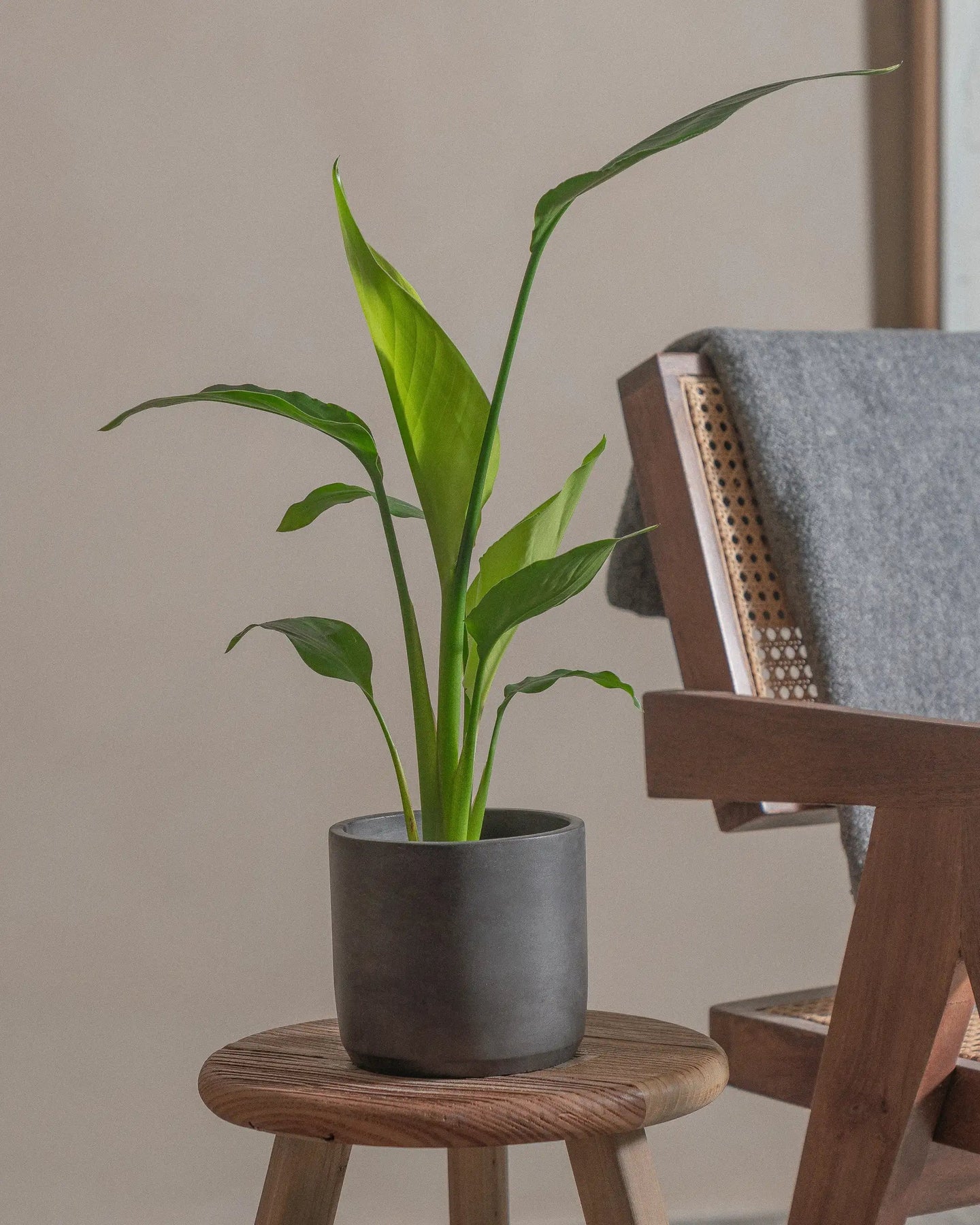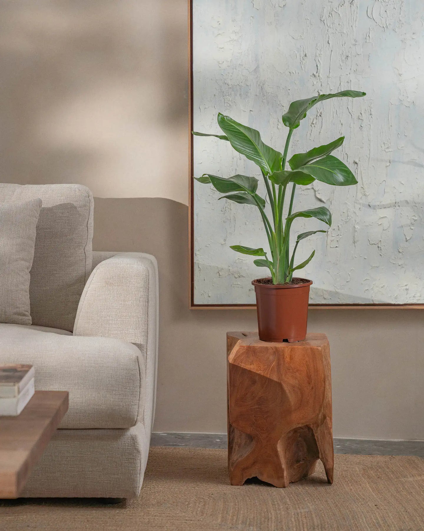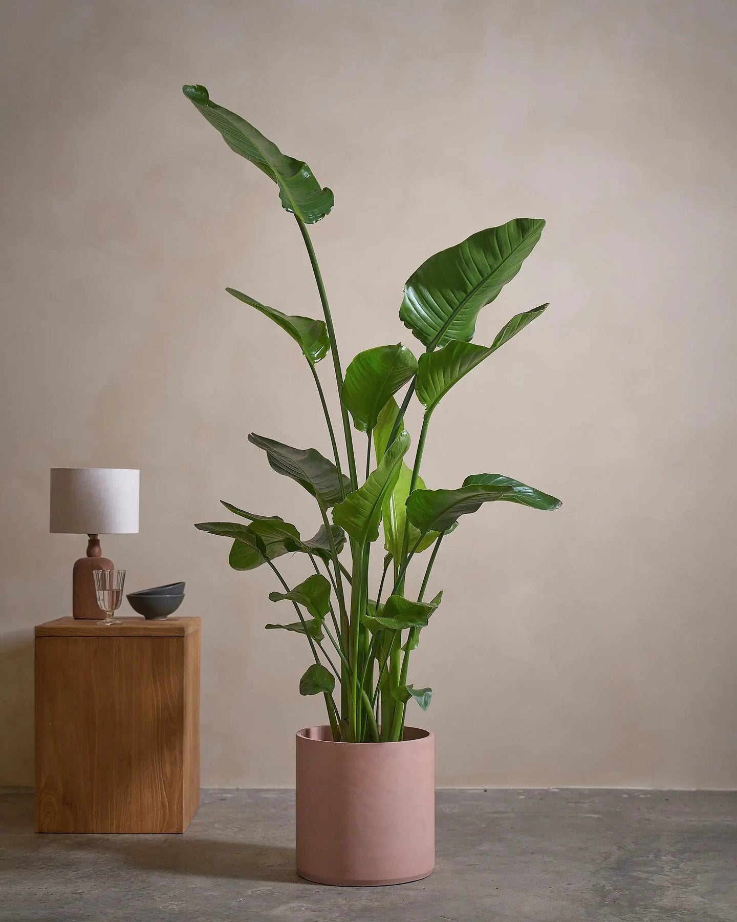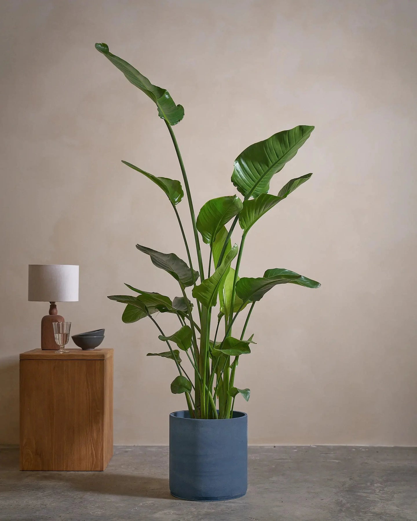 The Bird of Paradise (Strelitzia Nicolai) is a tropical plant, with larger-than-life leaves. This regal plant makes a statement in any room it is placed in.