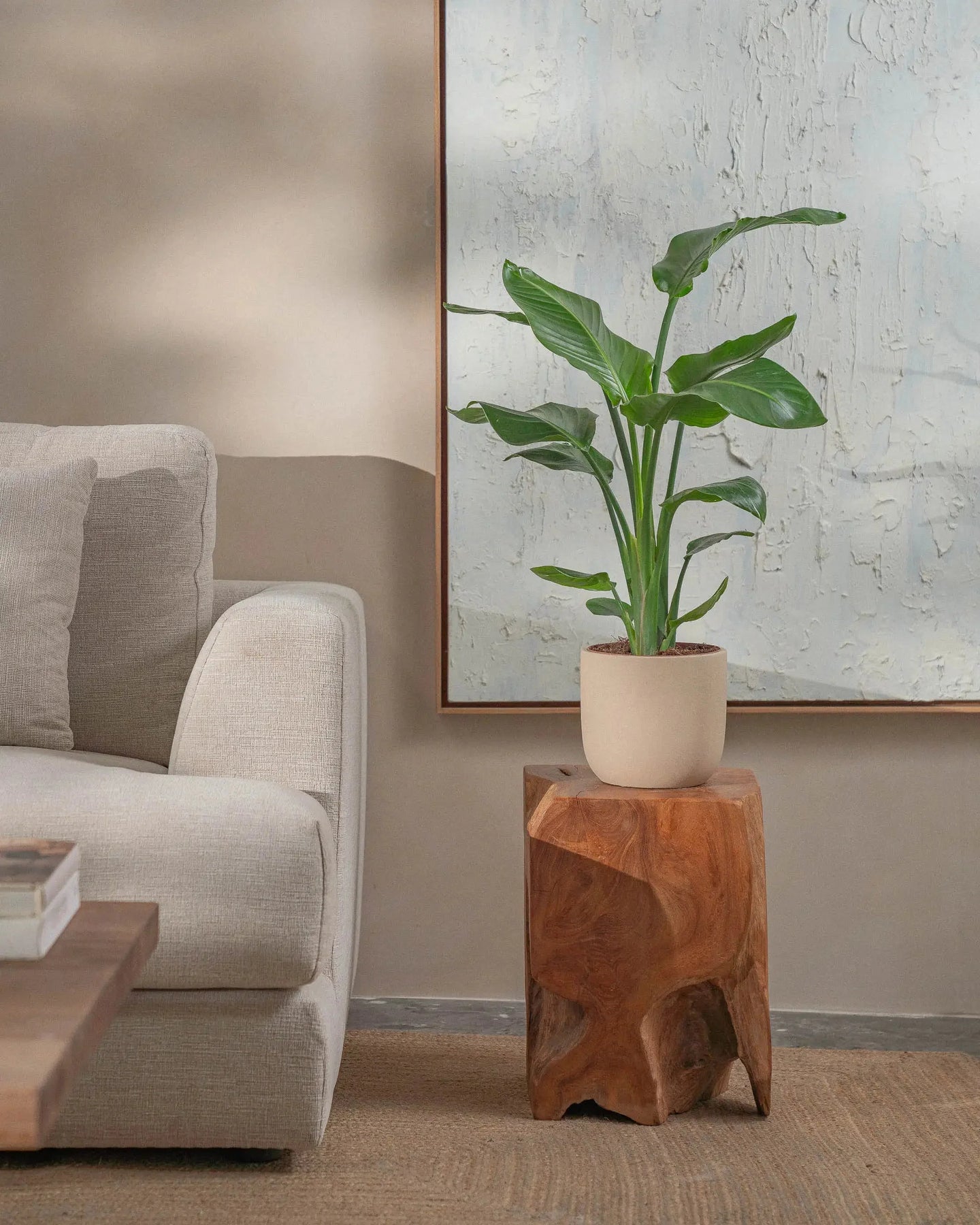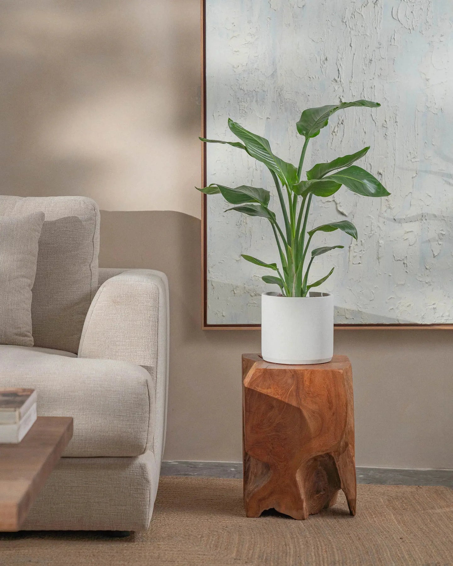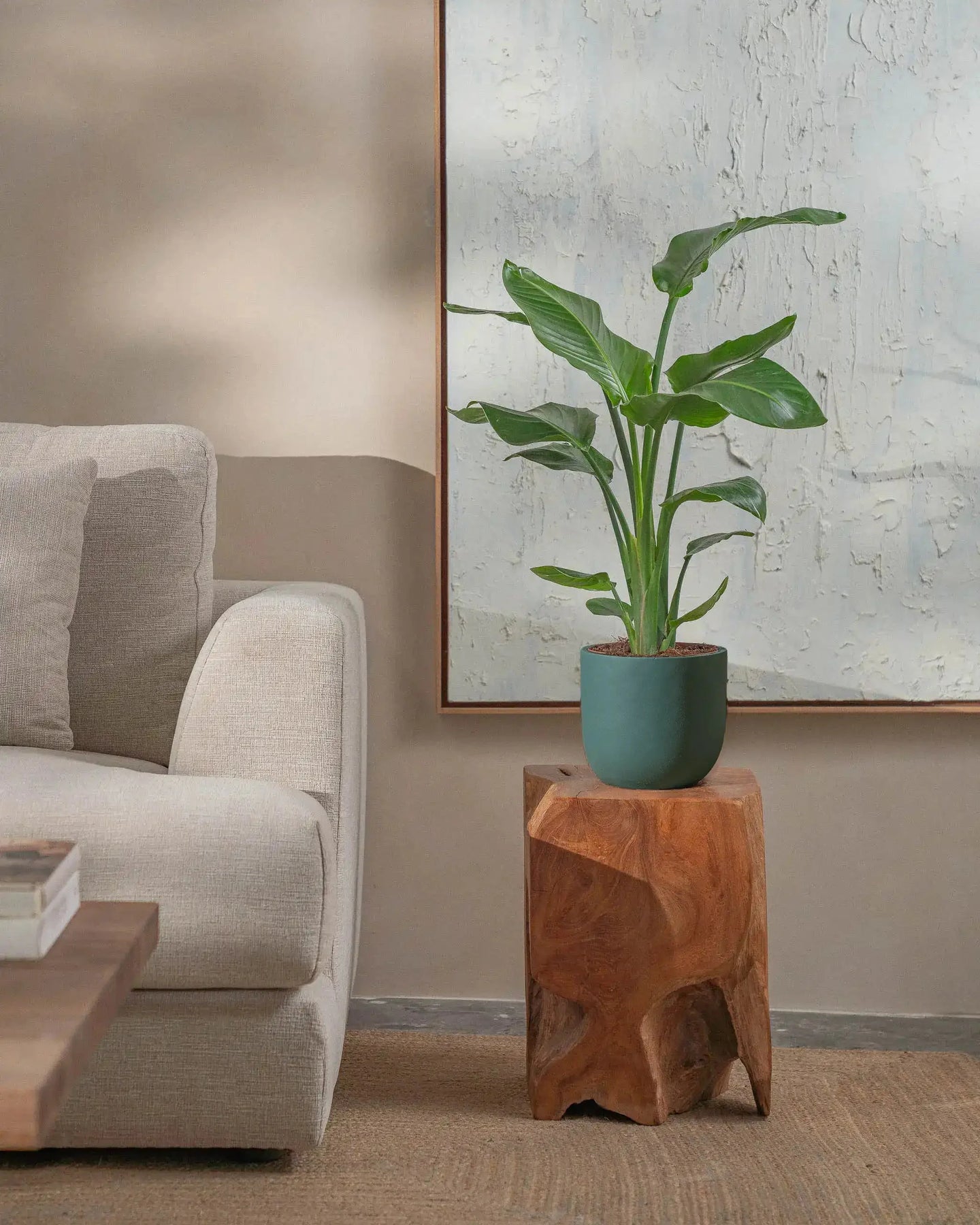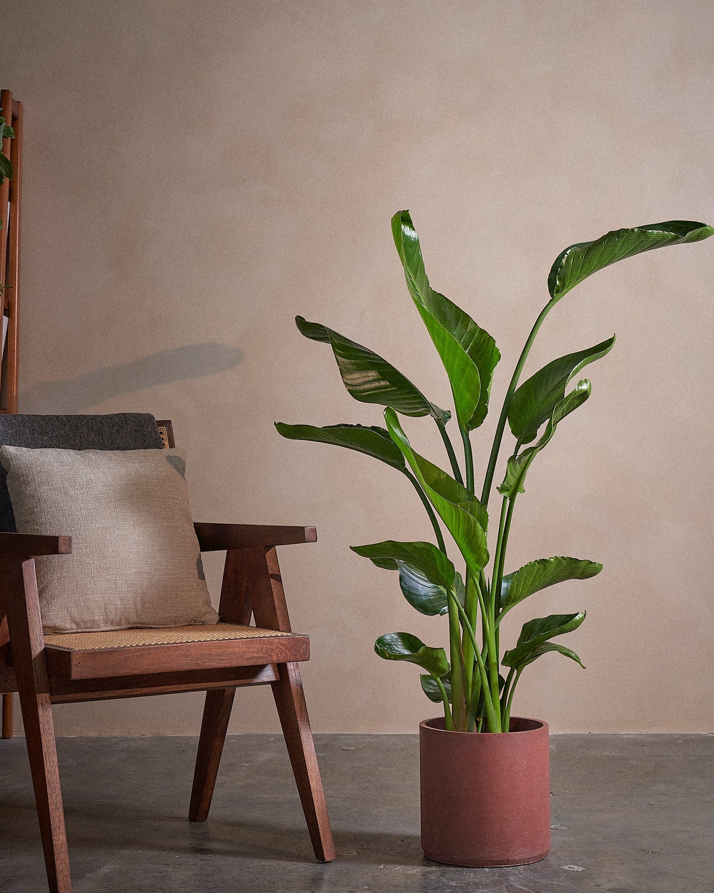 The Bird of Paradise (Strelitzia Nicolai) is a tropical plant, with larger-than-life leaves. This regal plant makes a statement in any room it is placed in.
