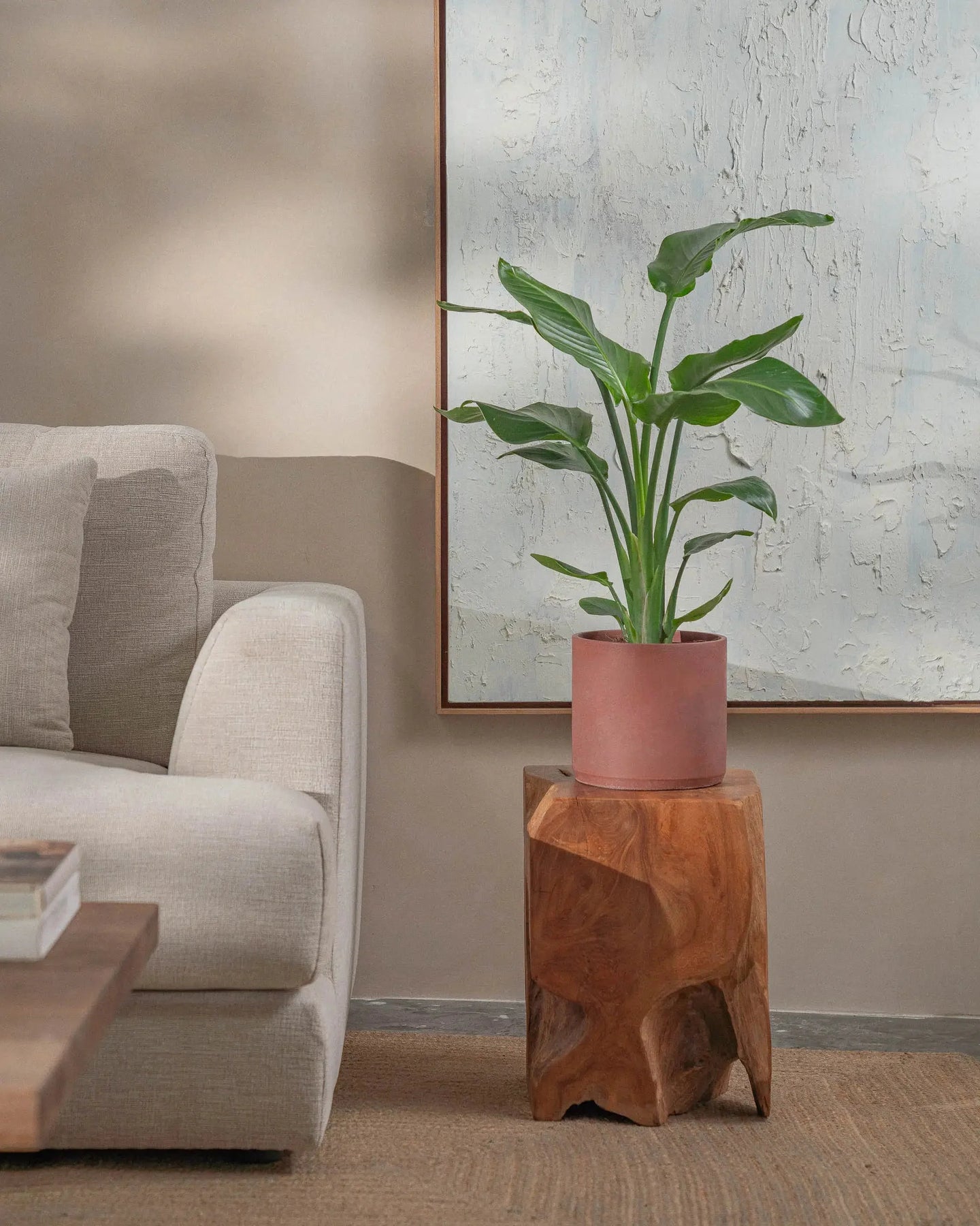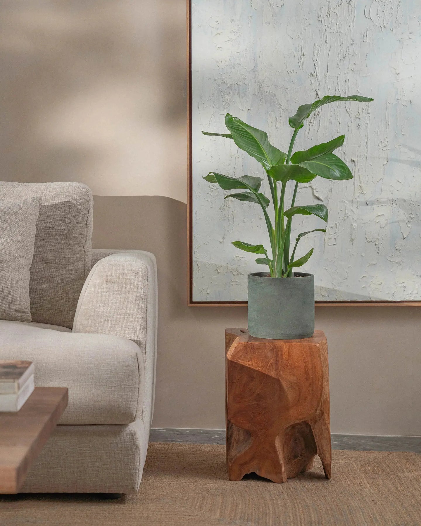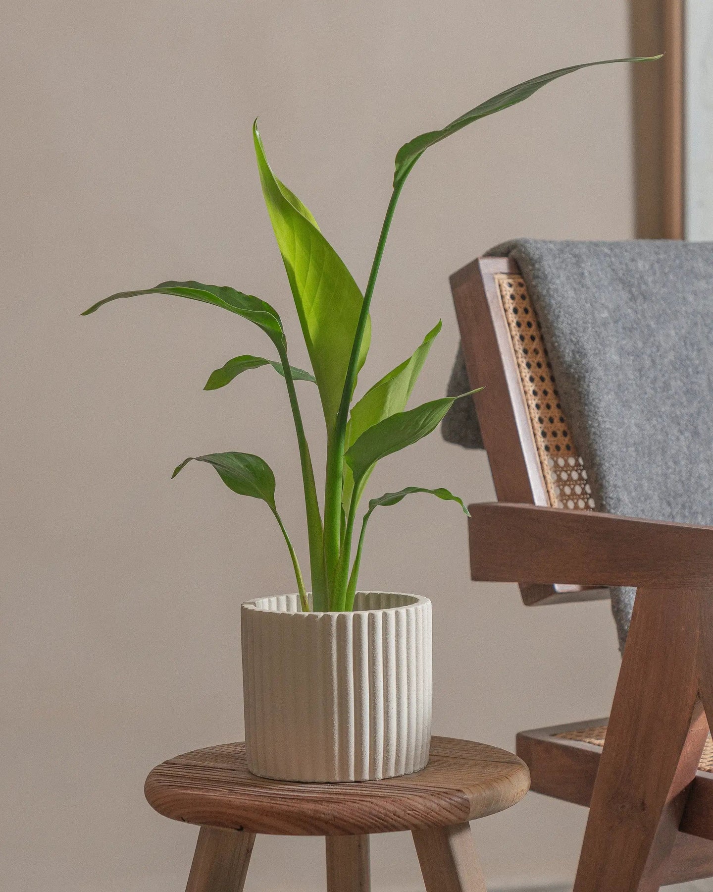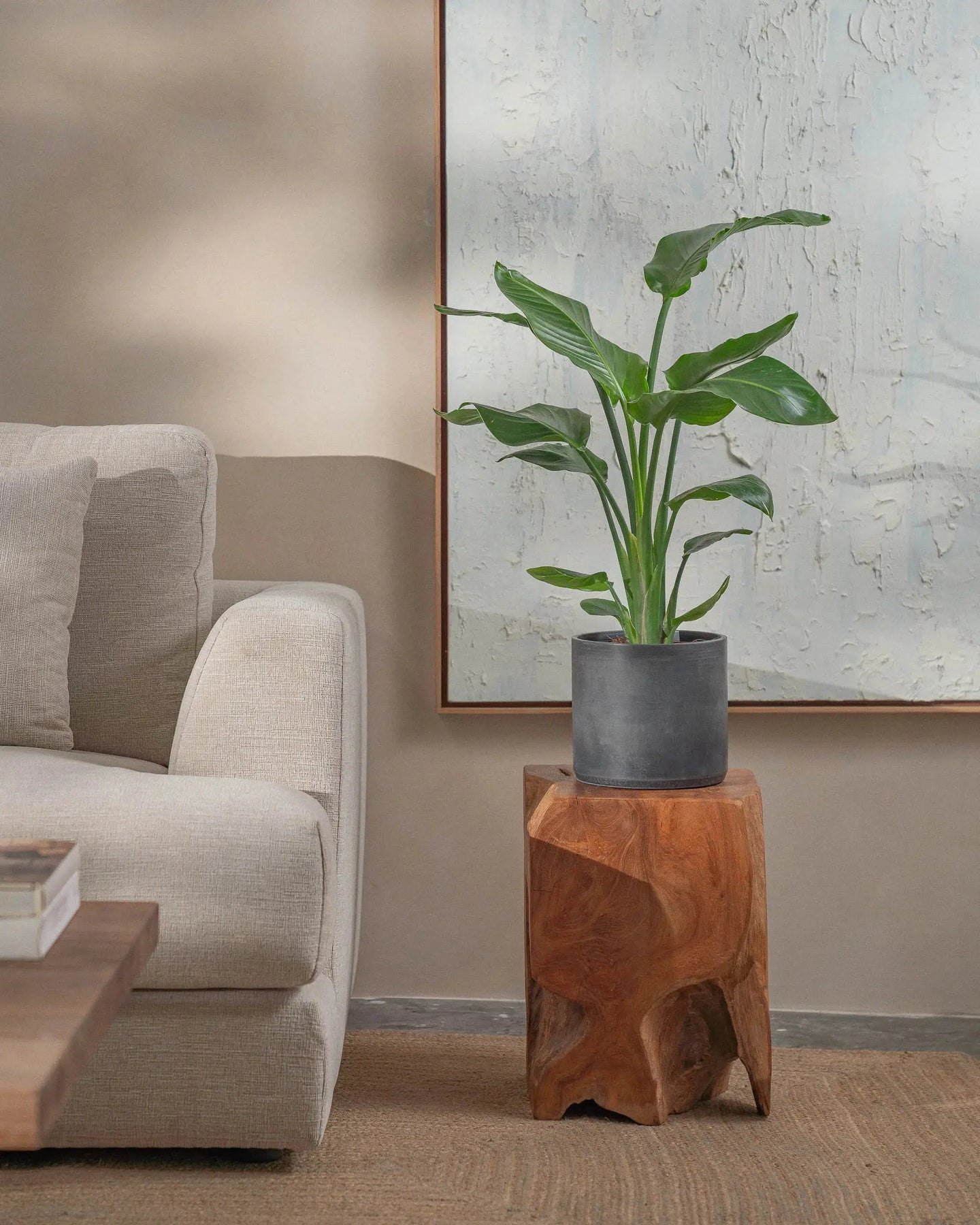 The Bird of Paradise (Strelitzia Nicolai) is a tropical plant, with larger-than-life leaves. This regal plant makes a statement in any room it is placed in.