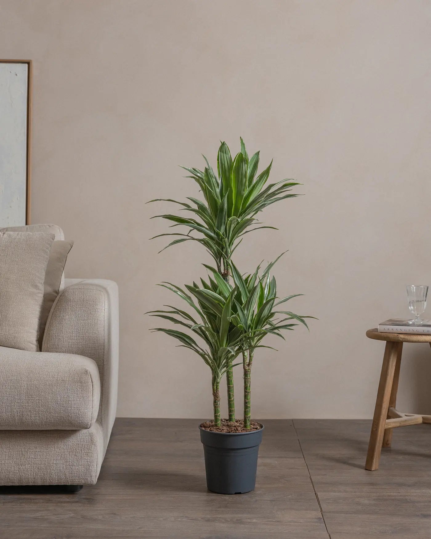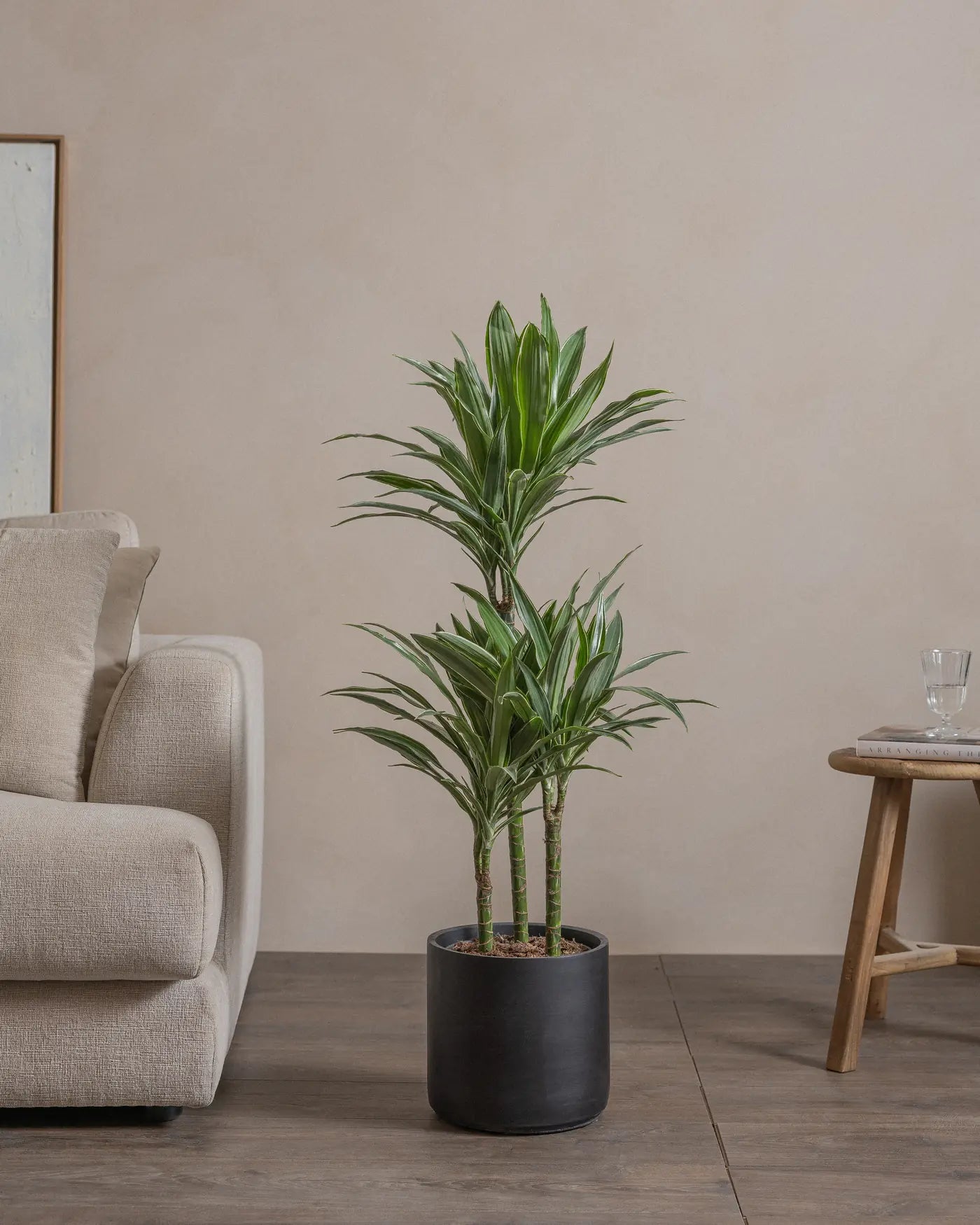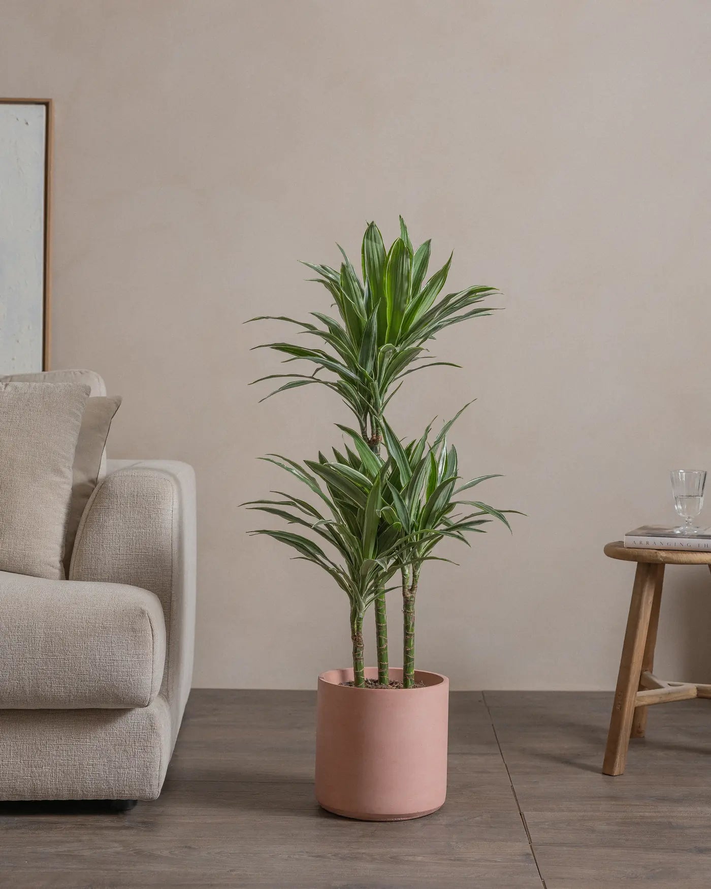 The Dracaena Warneki features vibrant, striped green leaves with creamy white accents, adding a refreshing pop of color to interiors. It thrives in low to moderate light and is well-known for its ability to filter indoor air, promoting a healthier living environment. Simple to care for and elegantly versatile, it’s a great option for anyone looking to elevate their home or office.