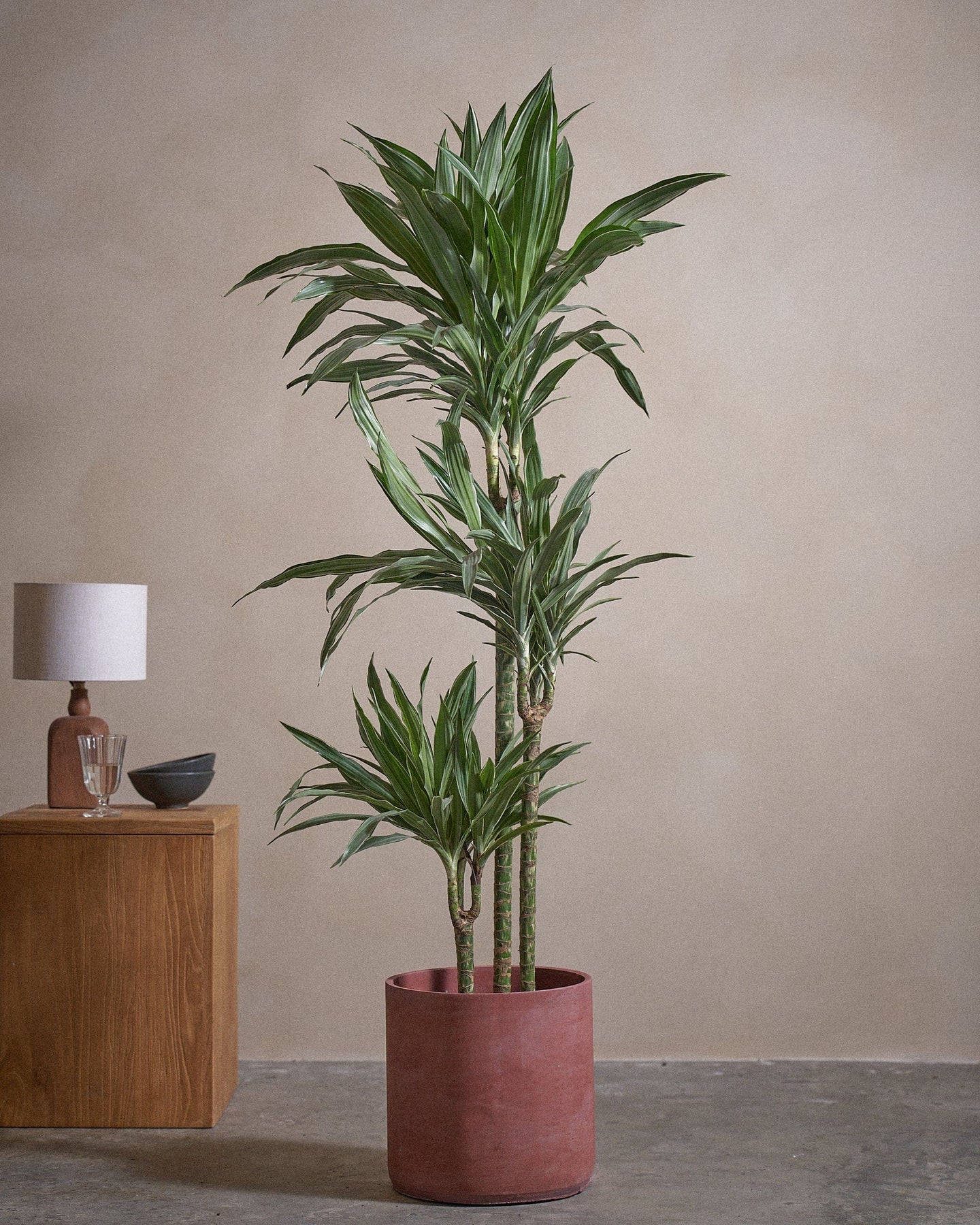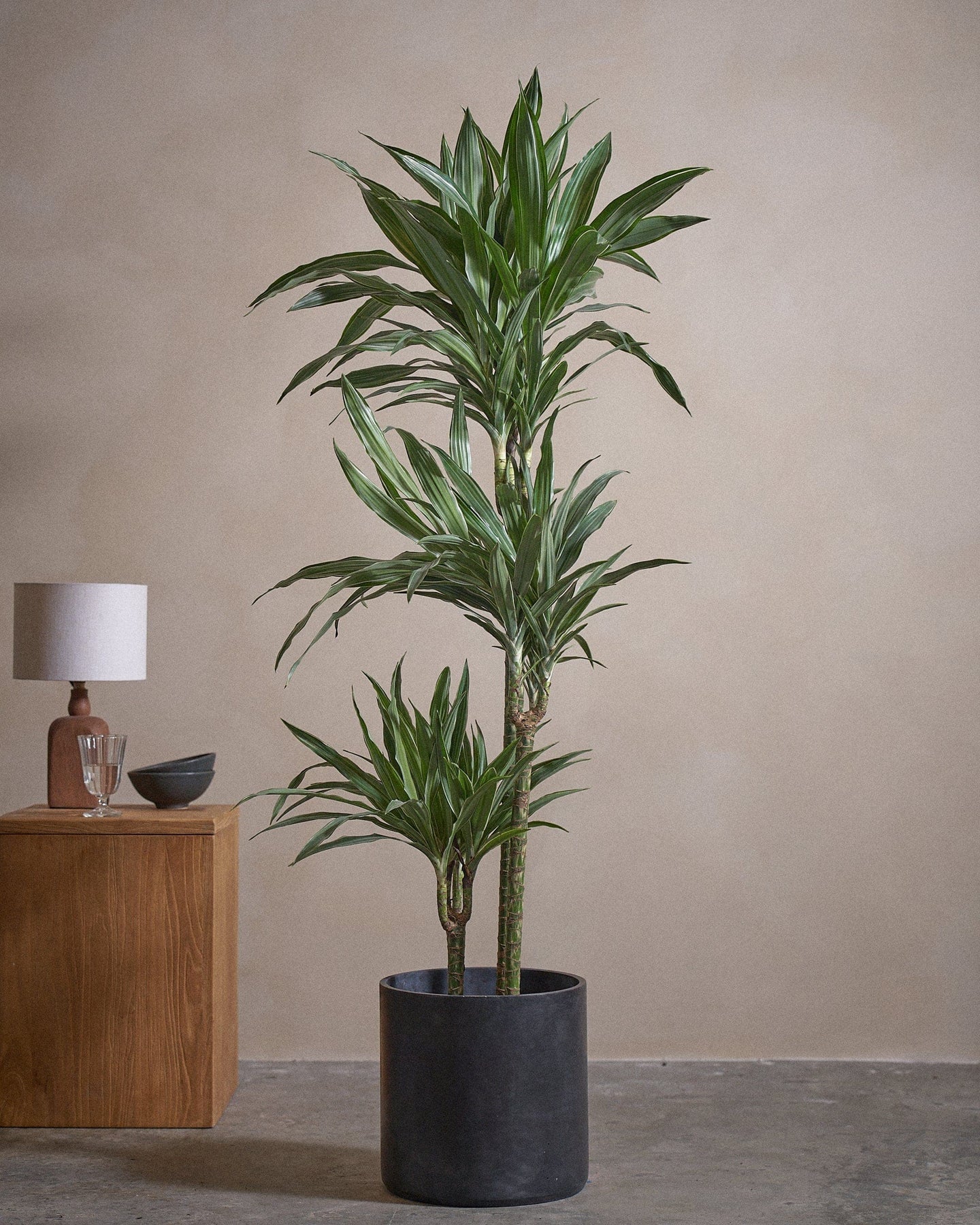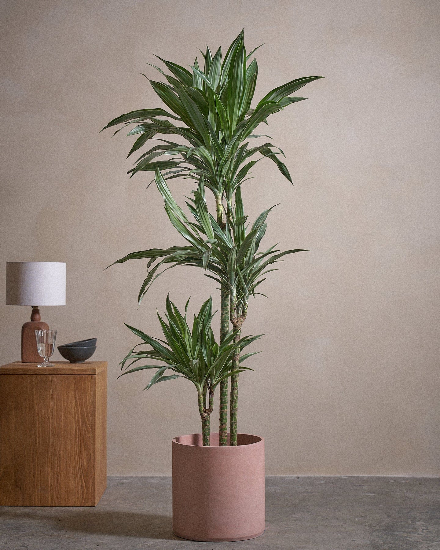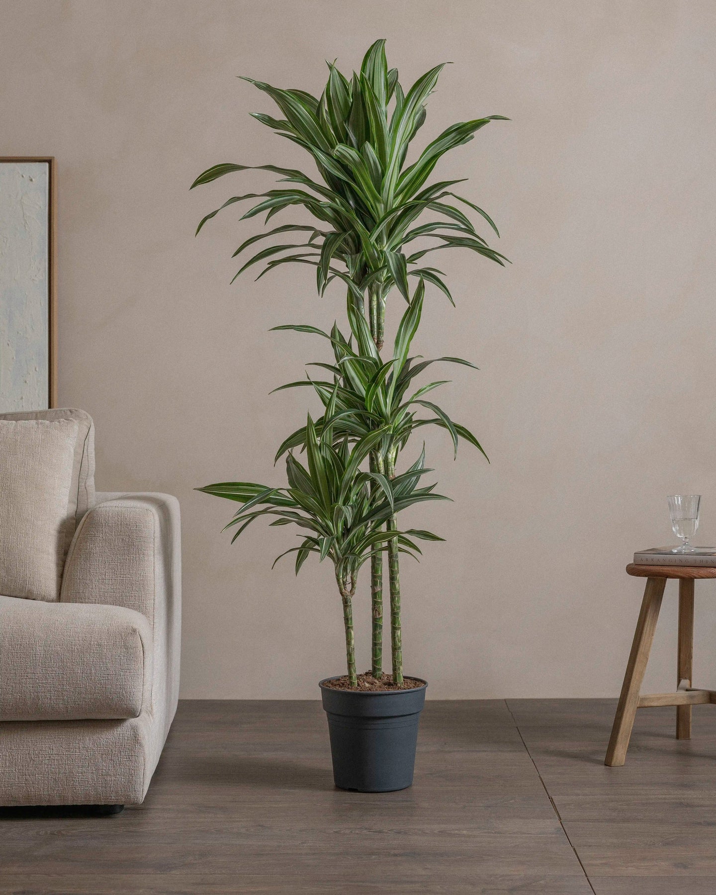 The Dracaena Warneki features vibrant, striped green leaves with creamy white accents, adding a refreshing pop of color to interiors. It thrives in low to moderate light and is well-known for its ability to filter indoor air, promoting a healthier living environment. Simple to care for and elegantly versatile, it’s a great option for anyone looking to elevate their home or office.